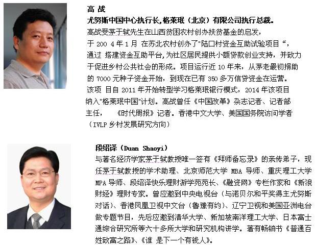 14:30—15:00 主题演讲:格莱珉银行经验与普惠金融在中国的发展