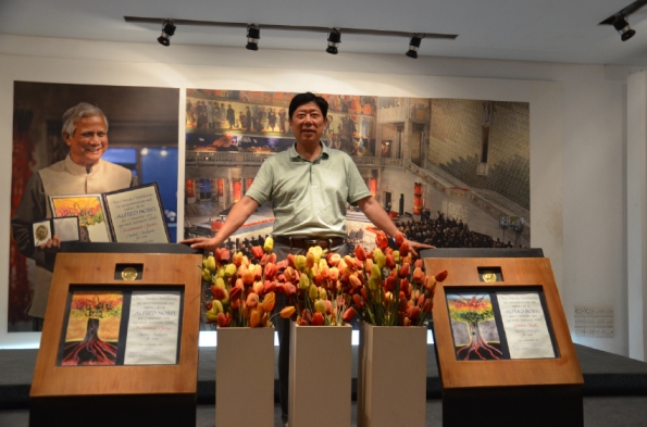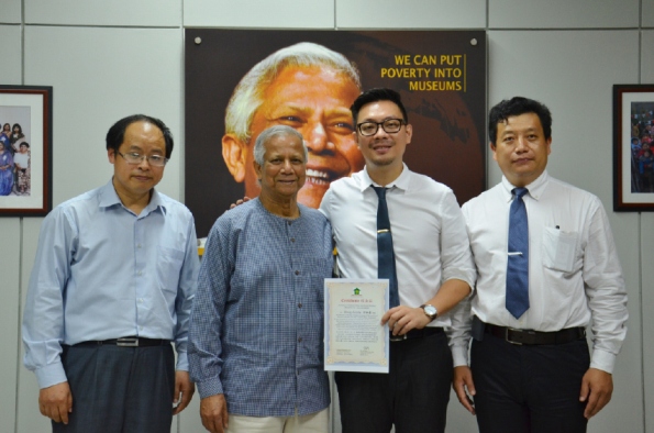 团友获得尤努斯微型金融高端培训班证书并与尤努斯合影