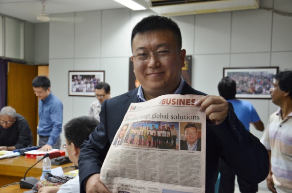 作为本次活动的重要组成部分,代表团还在格莱珉信托总部大楼举行了“微型金融与社会企业中国专场”,尤努斯教授出席了演讲并参与圆桌讨论,同时向每一位团员颁发了亲笔签名的培训证书,鼓励团员积极创新,用新的商业思维去解决社会问题。格莱珉银行现任行长沙贾汗先生、格莱珉信托总裁拉蒂菲以及达卡大学市场营销系教授纳兹木•侯赛因都与学员们进行了精彩的交流及分享。游学期间,随团导师冯兴元教授及高战先生还就微型金融与社会企业的模式与学员进行随时随地的分享与讨论。研讨的过程中学员们个个兴趣高涨,不仅为尤努斯的精神所感动,还愿意回国后亲身实践尤努斯模式并为消除乡村贫困做出自己的贡献。