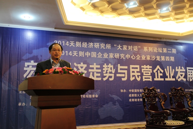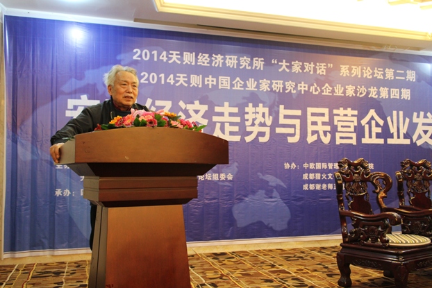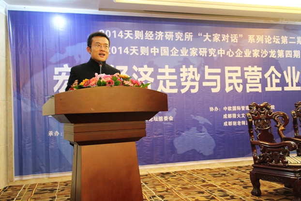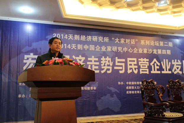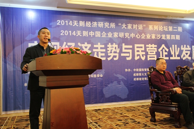 2014年2月28日天则企业家研究中心第四期企业家沙龙在成都瑞苑浣花里酒店召开,四川宇登投资咨询有限公司承办了本次会议。本期沙龙的主题是“宏观经济走势与民营企业发展”。会议邀请了天则经济研究所学术委员会主席,著名宏观经济专家张曙光教授,天则经济研究所副所长、天则中国企业家研究中心主任,中国社会科学院研究员,民营企业与民间金融专家冯兴元教授以及四川省社会科学院副院长盛毅教授。三位嘉宾分别做了30-40分钟的主题演讲,结合现实,深入浅出,语言轻松,引人入胜。100余位各界人士莅临了本次会议。