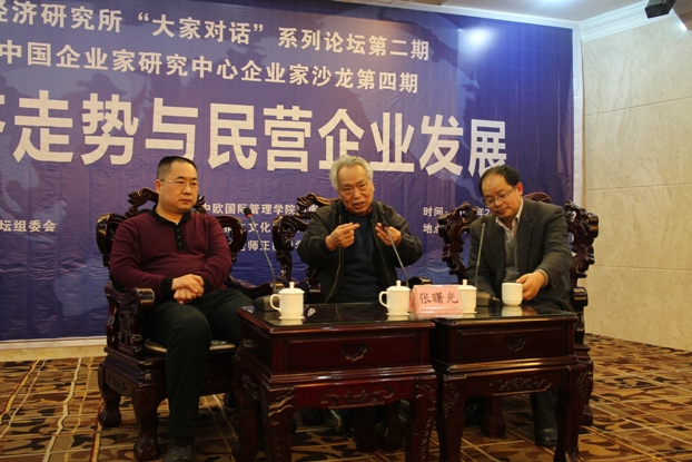 嘉宾演讲余兴未尽,随之而来的讨论和对话环节更加热烈。与会者的问题很具代表性,也体现出对个人及企业未来命运的关切。有与会企业家请教了诸位嘉宾对湖北首富蓝世立出狱重整民营航空怎么看, 有企业家向嘉宾请教传统行业面临新兴行业的挑战应如何面对,融资难问题如何解决,面对新兴移动互联网的平台如何运作,传统行业的现代化转型如何进行。也有人士谈到了在现在社会治理改革的情况下,商协会如何更好的发挥作用,如何更好的把握发展机遇?冯兴元教授在解答嘉宾提问时提到了德国的全能银行体制和管家型银行体制(Hausbank)也对当下的金融改革及企业转型与发展有很好的借监意义。就商协会的问题,冯兴元教授给出的建议是:“工商联系统下的活动不足,核心职能除了服务职能之外还有公共政策维权,平等的与政府谈判。要发挥更多的公共参与精神,让更多的企业家了解自己的使命,不仅仅是在商言商,要为改变中国的整体格局而努力!“嘉宾认为,从吴英和曾成杰案可以看出,中国企业家的生存环境非常恶劣,成立企业家自救基金和确立相应的企业家互助支持很重要。比如企业家群体应该在企业家遭遇口袋罪时在第一时间介入和协助接管企业,维护企业的运行。这与该企业家是否真正犯罪无关。张曙光教授还强调,面对现在企业生存环境较为不利,企业家们也要向制度型企业家转变,发挥更大的公共参与精神。只有改变制度才有希望!