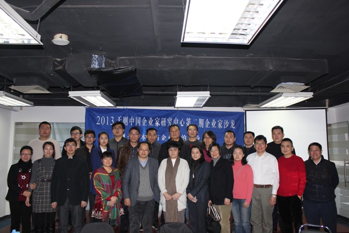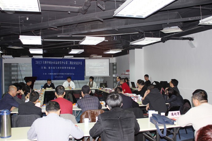 2013年12月28日天则中国企业家研究中心第二期企业家沙龙在天则经济研究所举办,会议主题是“资本论与企业家的身份焦虑”。邀请的嘉宾为文化部艺术研究院文化研究所刘军宁研究员和中国政法大学王建勋副教授,以及知名企业家王瑛女士。沙龙主持人是天则经济研究所副所长、天则所企业家研究中心主任冯兴元。参加会议的还有来自各界的企业家20余人。会议围绕“关于剥削理论的再质疑”、“关于中国社会的仇富观”、“关于企业家到底有没有身份焦虑的问题”以及“制度型企业家”等问题展开了深入的探讨,嘉宾与企业家还进行了有益的交流互动。