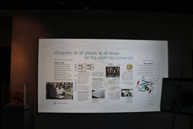 学校诺奖得主共3位,图为英语与希伯来语的介绍