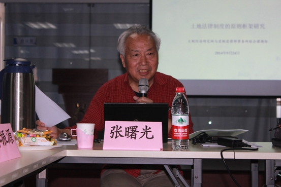 去年我们为改革提供我们的制度方案,我们在9月24号发布了《土地法律制度的原则框架及其研究》,这是一个历经两年的研究,其目的是为我国的《土地基本法》提供一套原则框架。其立意是对现在所谓的土地法律制度,尤其是以《土地管理法》为代表的土地法律体系非常不满,我们认为应该把它废弃,所以我们提出这个原则框架,这个图是张老师在主持我们的发布会。