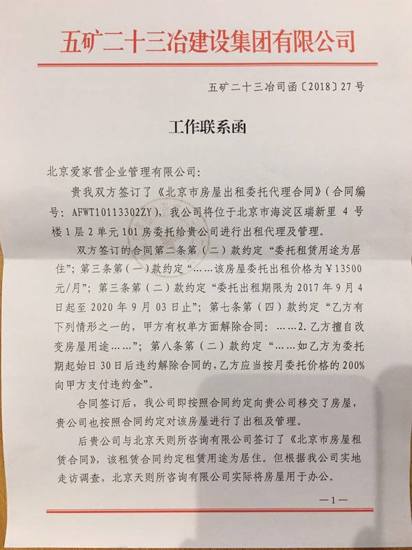 但租用没有多久,爱家营公司就开始要求我们搬走。2018年3月16日,该公司转来房东的《工作联系函》(附件二),要求我们搬走。3月26日,我们给爱家营公司复函(附件三),指出他们没有单方面中止合同的权利。