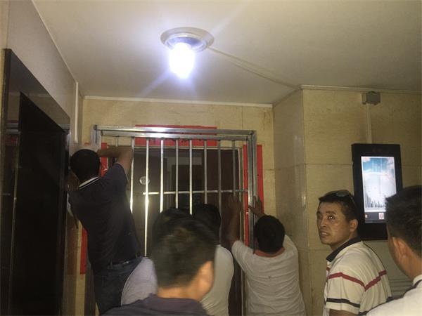 7月10下午四点半左右,一群工人扛着铁门来到我司办公室门口,用电焊将铁栅栏门焊上,并用锁锁上,将我司员工锁在办公室内(见后面图片)。随后又断了电。我司随即报警。警察来后,我司员工才得以出门。警察并警告对方不得再锁门。