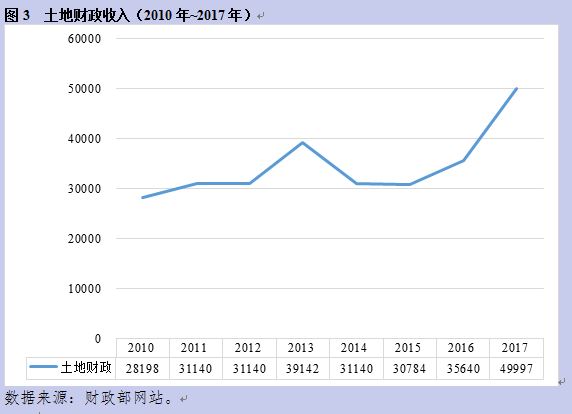自2000年以后,随着中国经济的腾飞和住宅商品化,土地价格显著上涨,也开启了政府行政部门从中分割利益,即土地财政的阶段。对于这一部分政府对国民财富的分割,我国更没有有效的制度约束。因而土地财政的数额也越来越大,从2010年的2.8万亿增长到2017年的5万亿。