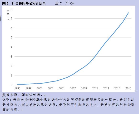 至于社会保险基金的累计余额,自1997年以来更是一路飙升,从832亿上升为2017年的7.6万亿,比一年的社会保险收入还要高。这是徒然占有社会资源,增加企业和个人负担,却并不发挥作用的部分。