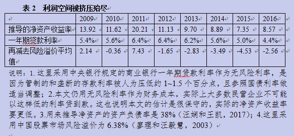 假定资产负债率为38%(汪娴和王凯,“制造业上市公司资本结构现状分析”,《科技经济市场》,2017年第8期),则估计出净资产收益率,减去由中央银行规定的商业银行一年期贷款利率,再减去中国股票市场合理的风险溢价,则可作出判断。我们看到,自2012年以来,制造业的净资产收益率减去无风险利率和合理的风险溢价已经是负值。其含义是,这些企业的资本已不能从企业的运营中获得平均的市场回报,还不如按商业银行的利率水平进行一年期的贷款业务。这表明,就是在这几年,不受约束的税负增加已经挤掉了企业的利润空间。