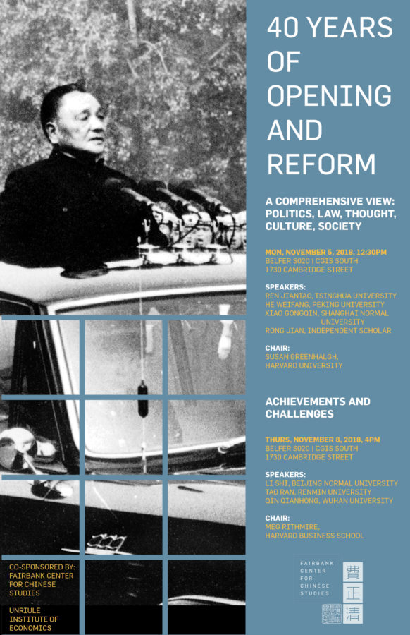 参加系列活动的哈佛大学学者包括德怀特 · 珀金斯(Dwight H. Perkins)教授、傅高义(Ezra F. Vogel)教授、杰弗里·弗兰克尔(James W. Harpel )教授、傅士卓(Joseph Fewsmith)教授、伍人英(Mark Wu)助理教授、马丁·费尔德斯坦(Martin Feldstein)教授、任美格(Meg Rithmire)副教授、宋怡明(Michael