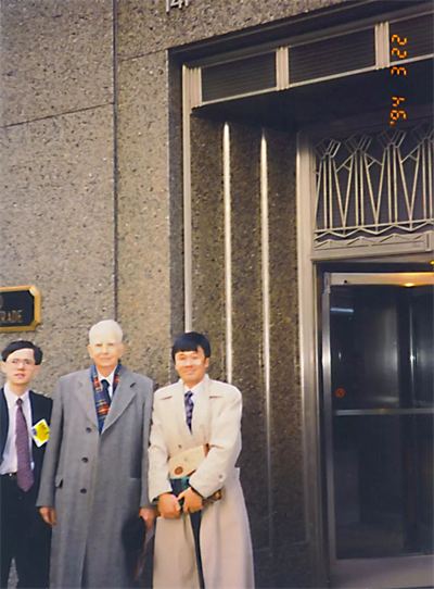 本文作者盛洪与科斯在芝加哥期货交易所门前