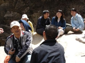 2006年4月24日,一个晴朗的早晨。天则所员工到昌平区碓臼峪春游,呼吸新鲜空气,亲近大自然。这里泉水潺潺,绿波荡漾,群山环绕,在崎岖多姿的3公里长沟内,遍布奇花、异草、峻峰、怪石。大家在山里野餐,玩杀人游戏,欢声笑语不断。